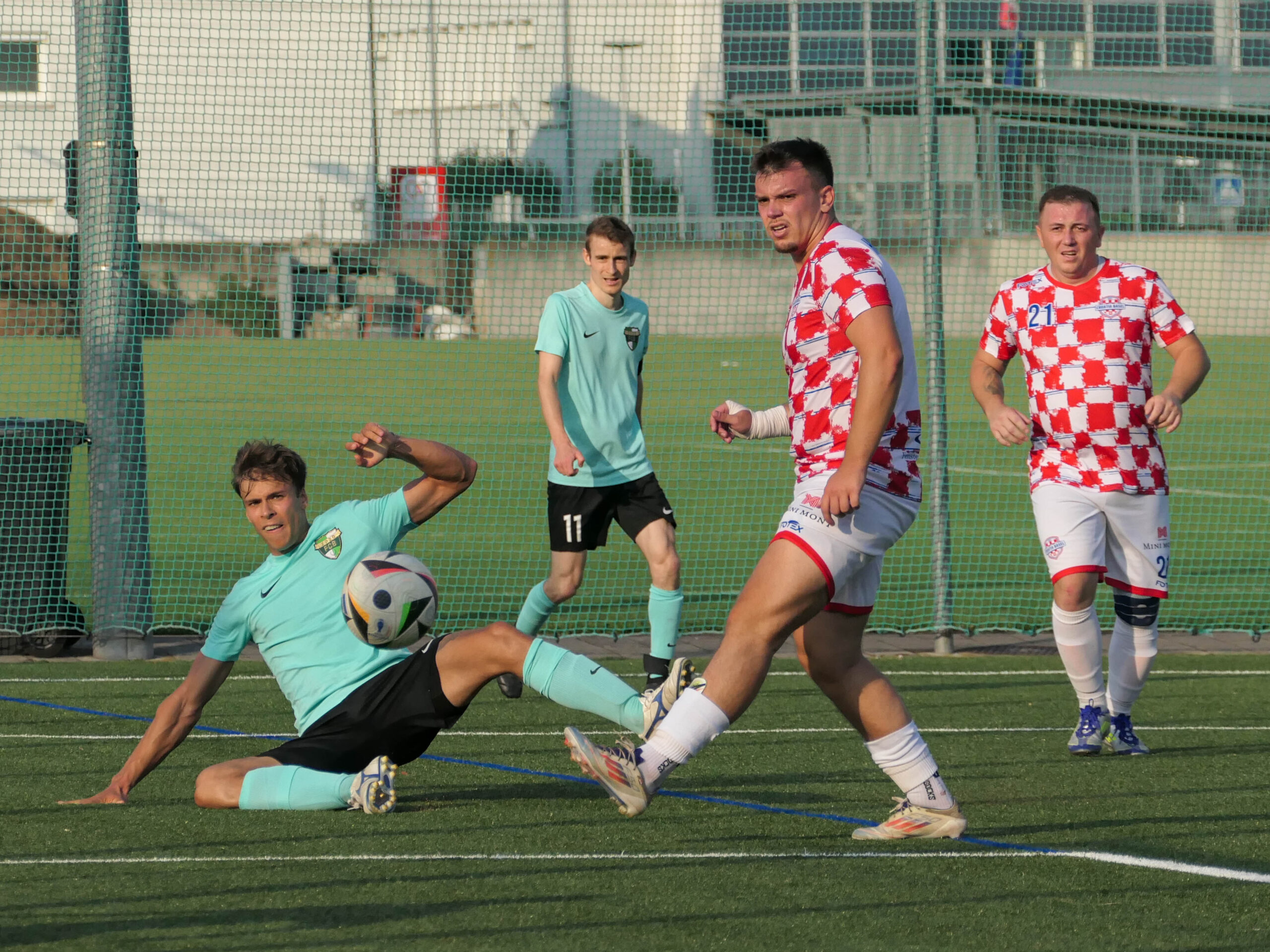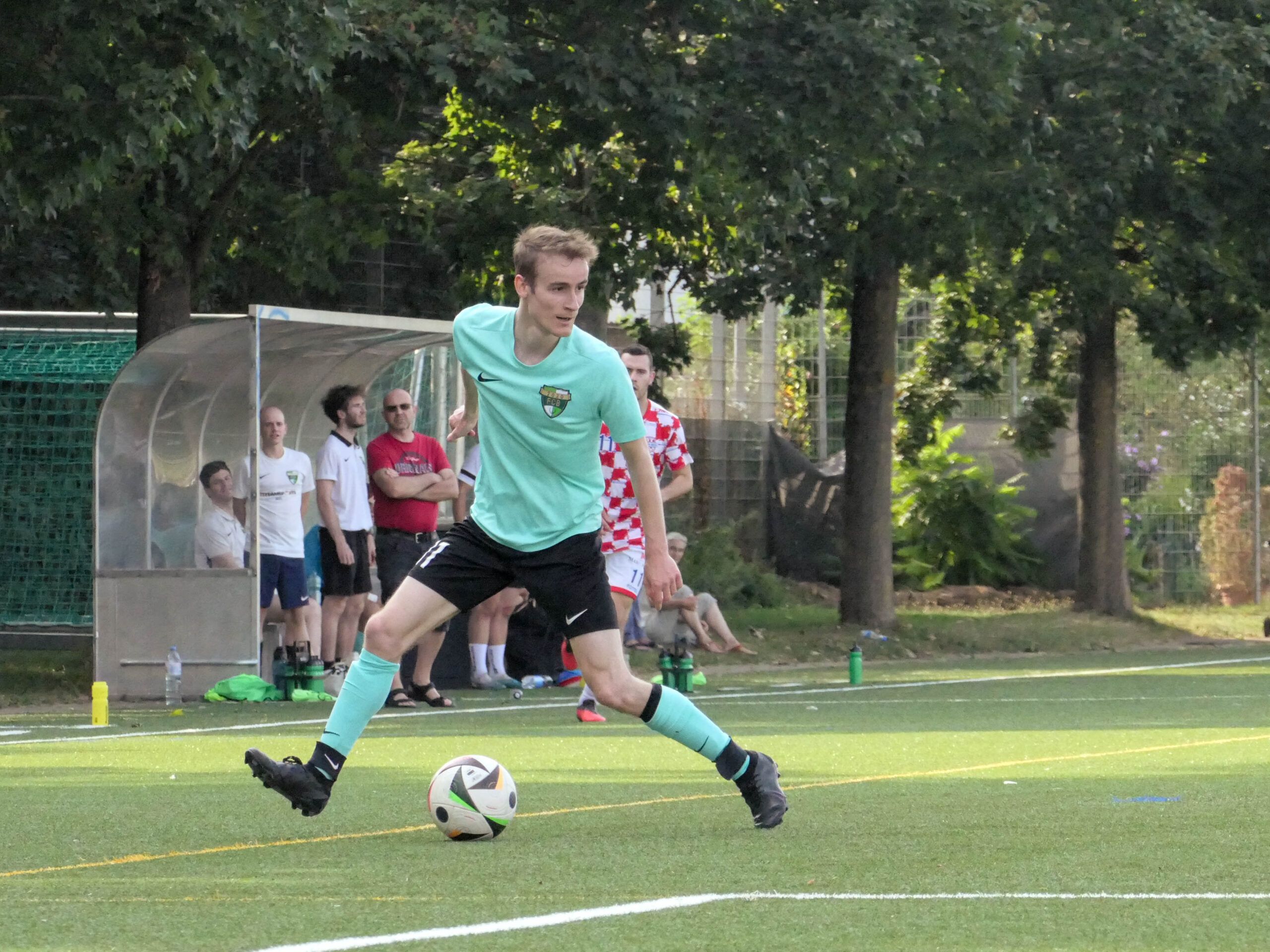Bei diesen heissen Temperaturen ist eine dünne Sommerdecke zum Schlafen optimal. Suboptimal ist jedoch eine dünne Personaldecke bei einem Fussballspiel. Mit Letzterem muss sich Trainer Pablo Iselin beim Auswärtsspiel gegen Croatia rumschlagen und sich erneut ins Aufgebot nehmen. Das Heimteam macht sogleich Dampf und will sich für die 3:11-Blamage vom Frühling revanchieren. Doch es sind die Gurken, welche in der 9. Minute mit der ersten Chance in Führung straucheln. Luca Schwab lanciert Valentin Roos mit seinem linken Fuss göttlich in die Tiefe, der legt auf den zweiten Pfosten, wo Pascal Wohlwender den Ball ins Tor grätscht. Zu mehr Chancen kommen jedoch die Kroaten, auch wenn Wohlwender nach einem weiteren Traumpass von Schwab in der ersten Halbzeit einmal alleine vor dem gegnerischen Kasten auftaucht und Milan Brupbacher per Distanzschuss den Querbalken trifft. Der Torstau des HNK Croatia Basel entlädt sich dann während den zweiten 45 Minuten. Nach 85 Minuten steht es 4:1 für die Rotweisskarierten. In der 94. Minute vermag Wohlwender mit seinem zweiten Streich auf 2:4 zu verkürzen – ein Endstand, der in Ordnung geht. Den Assist liefert übrigens Iselin, der als letzte Option den Platz betritt und sich schamlos in die Statistik eintragen lässt.